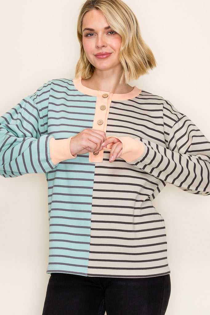Color Trimmed Half Button Knit Top
