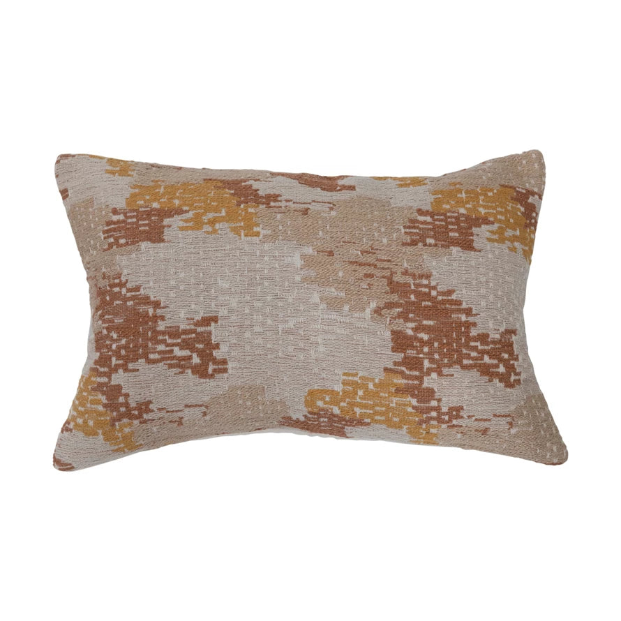 24" X 16" Woven Cotton Blend Jacquard Lumbar Pillow, Polyester Fill